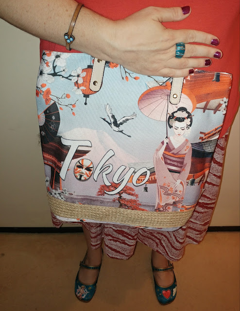 Fierce competition between you and Amber! It's a very pretty necklace, so I'll be giving you both equal points ;-) The skirt is a lovely pattern, and it's a bonus that it has pockets, too. I love it best with the Hippies tee-shirt. It seems you've got quite a collection of bags too! xxx