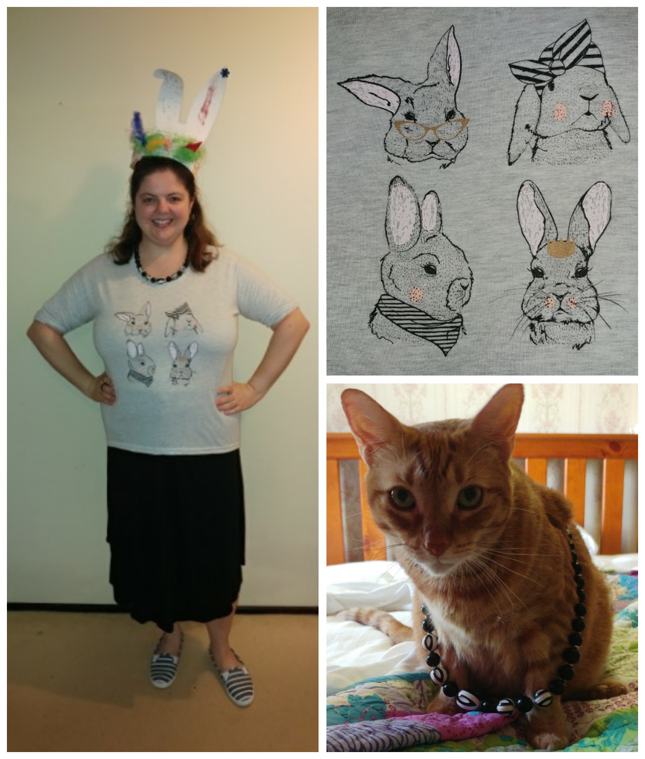 Happy Easter to you and your family. Your bunny top is quite cute and I do like your Easter hat!! Maybe a photo of Amber wearing it would be fun???